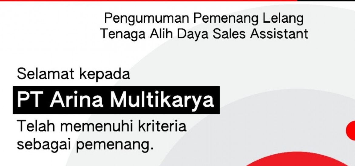Congratulations to PT Arina Multikarya who has met the Criteria as the Winner of the Sales Assistant Power Supply Auction