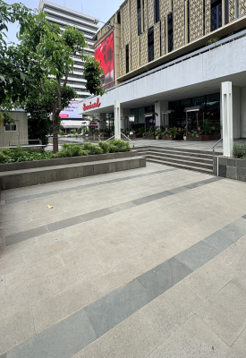 Berada di area depan gedung dengan panorama langsung ke jalan M.H. Thamrin. Dengan karakter ruang terbuka dan suasana pusat kota yang dinamis, area ini mampu menghadirkan eksposur optimal serta pengalaman interaktif bagi audiens. | 2025