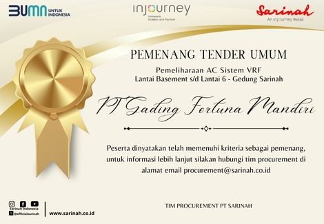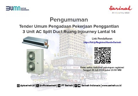 Tender Umum Pengadaan Pekerjaan Penggantian 3 Unit AC Split Duct Ruang Injourney Lantai 14