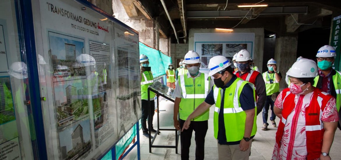 Menteri BUMN Erick Thohir mengunjungi Sarinah untuk melihat langsung progres pemugaran Gedung Sarinah dalam rangka transformasi bisnis Sarinah.