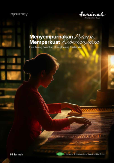 PT Sarinah mengusung tema “Menyempurnakan Potensi, Memperkuat Keberlanjutan” di 2024. Ini adalah komitmen untuk meningkatkan kapasitas, daya saing, dan memaksimalkan potensi operasional, sosial, dan lingkungan. Inisiatifnya mencakup pengembangan karyawan, kolaborasi pemangku kepentingan, praktik bisnis ramah lingkungan, efisiensi sumber daya, dan ekonomi sirkular, demi manfaat masyarakat, lingkungan, serta mendukung SDGs.
