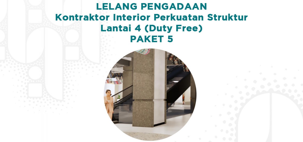 Sebagai bagian Transformasi Sarinah kembali ke khitahnya untuk menjadi Rumah bagi UMKM Indonesia Diberitahukan bahwa PT Sarinah (Persero) akan menyelenggarakan Lelang Pengadaan Kontraktor Interior Perkuatan Struktur Lantai 4 (Duty Free) PAKET 5