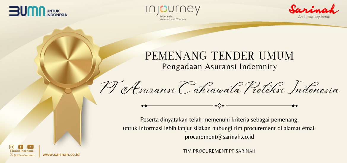 untuk informasi lebih lanjut, silakan menghubungi Tim Procurement PT Sarinah dialamat email procurement@sarinah.co.id