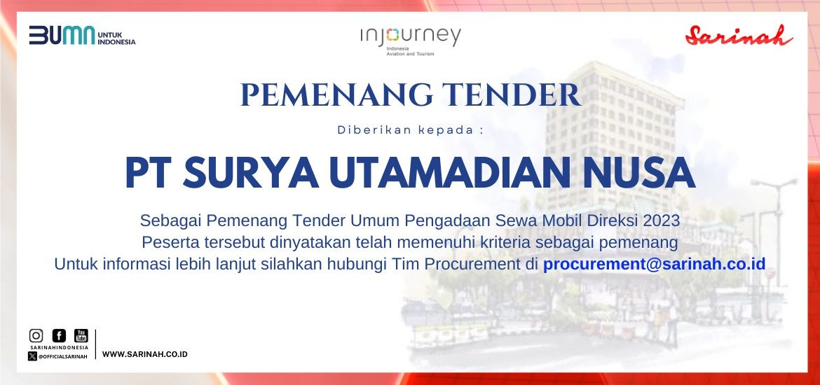 Pengumuman Pemenang Tender Umum Pengadaan Sewa Mobil Direksi 2023