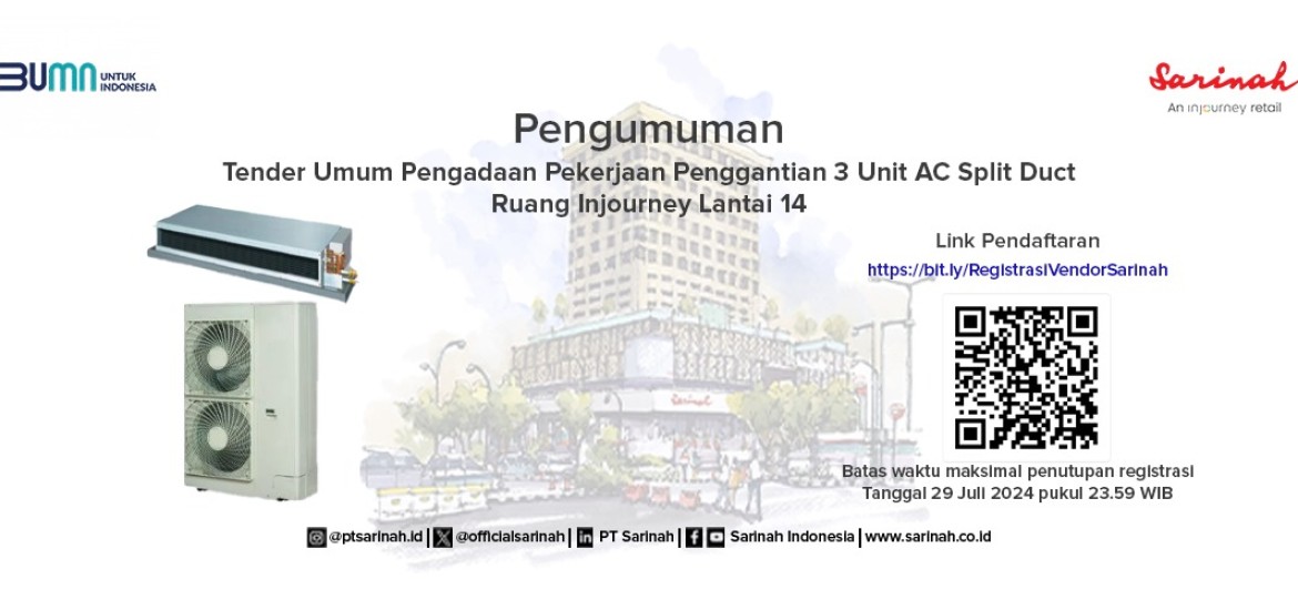 Tender Umum Pengadaan Pekerjaan Penggantian 3 Unit AC Split Duct Ruang Injourney Lantai 14