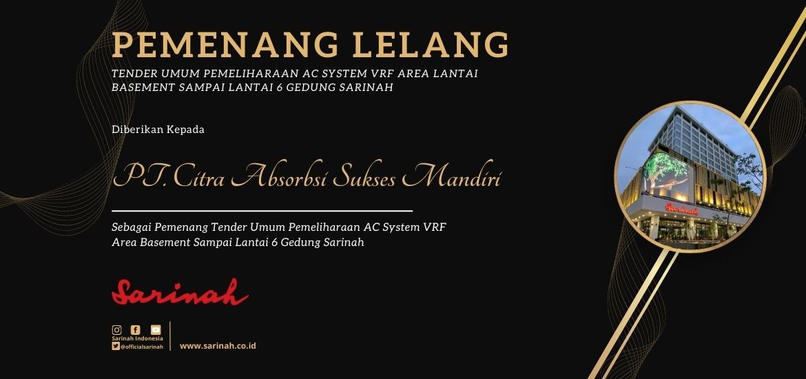 The Winner of the General Tender for Maintenance of Air Conditioning System VRF for the Basement Floor Area to the 6th Floor of the Sarinah Building.